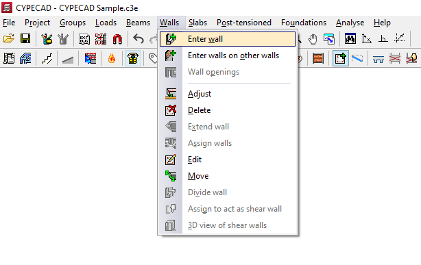 - y el resto de opciones relacionadas con los muros, incluyendo las que permiten modificar su geometría, dividirlos o asignarles la función de muro de cortante;