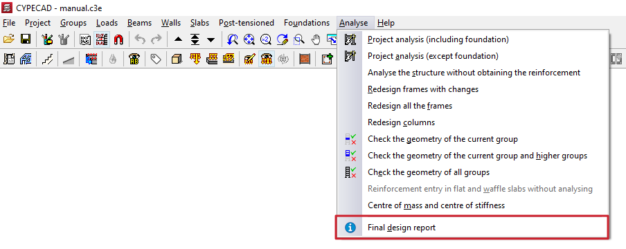 Este listado puede accederse en cualquier momento desde el menú "Calcular", eligiendo la opción "Informe final de cálculo".