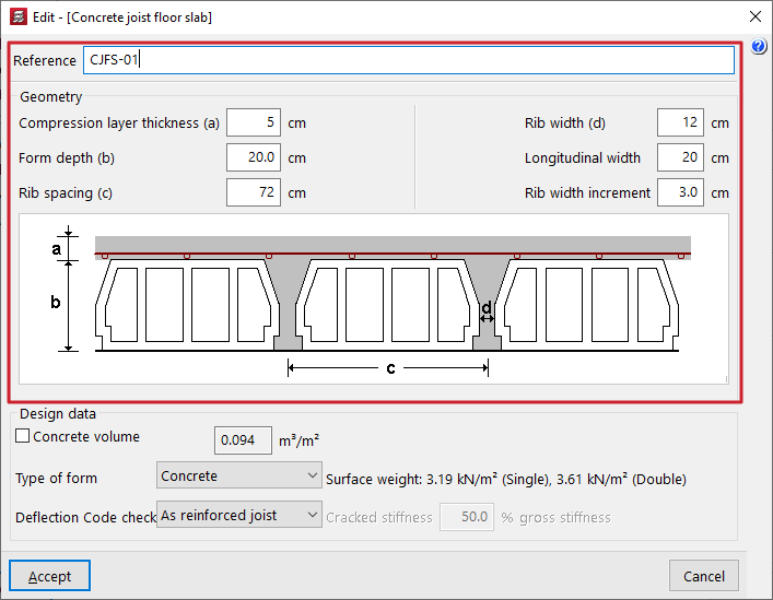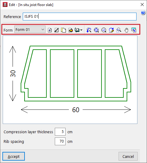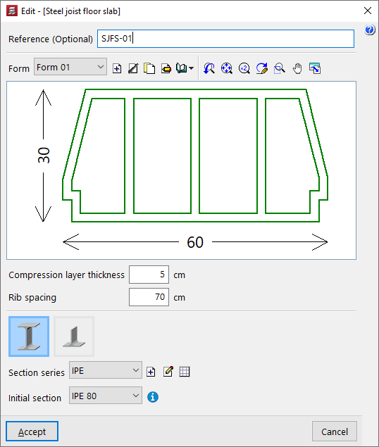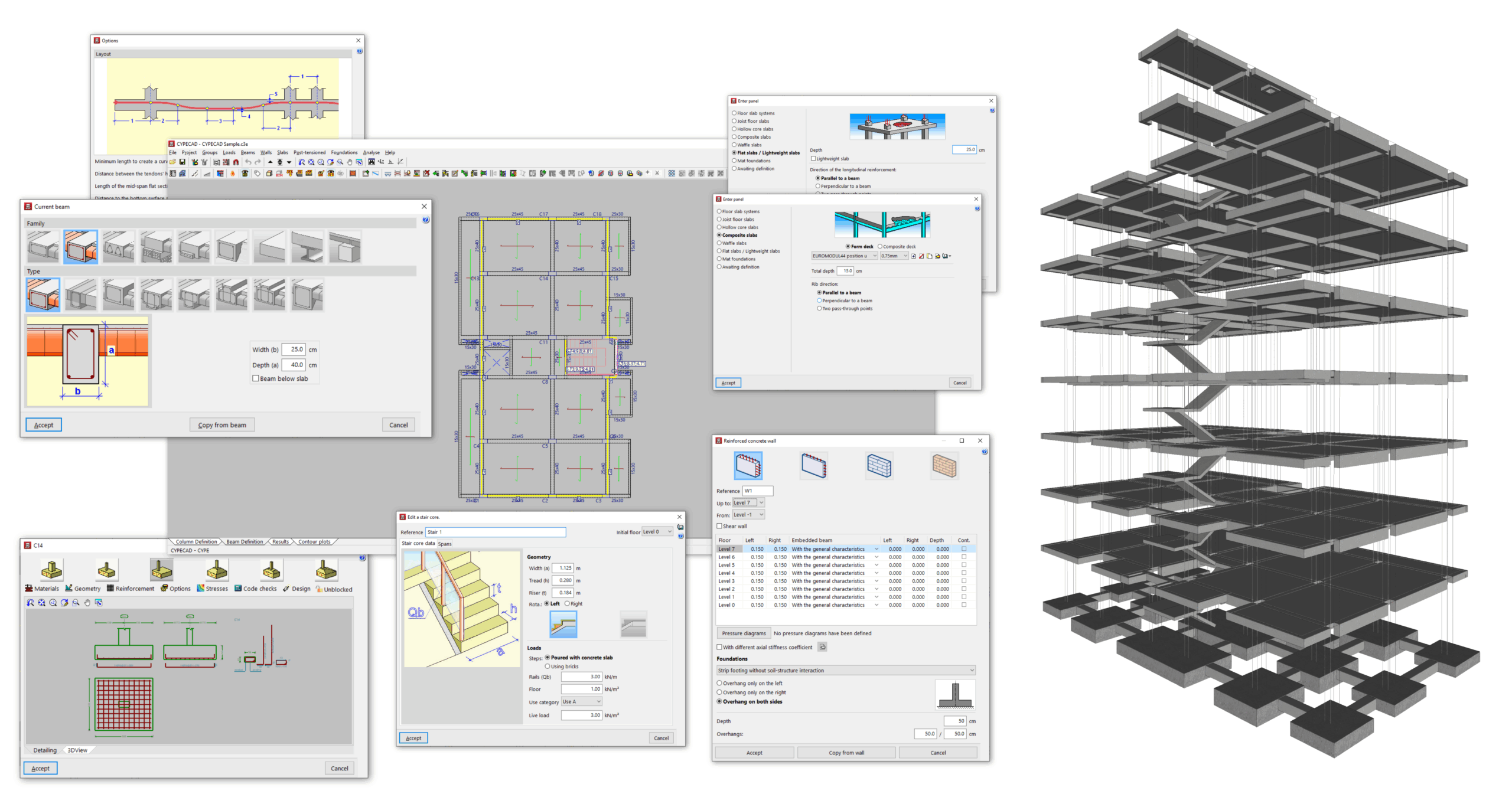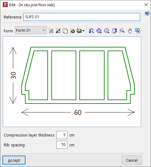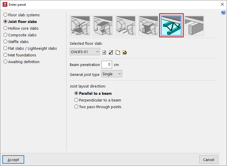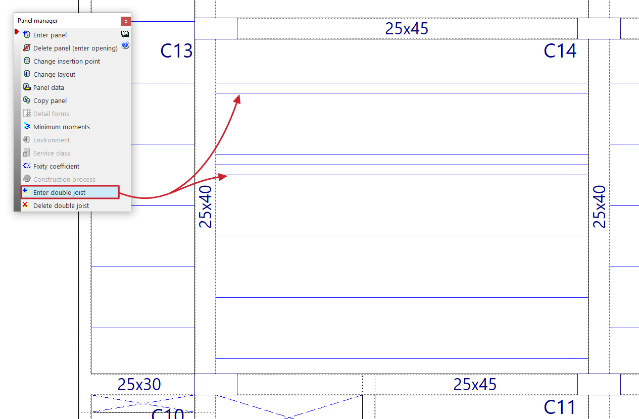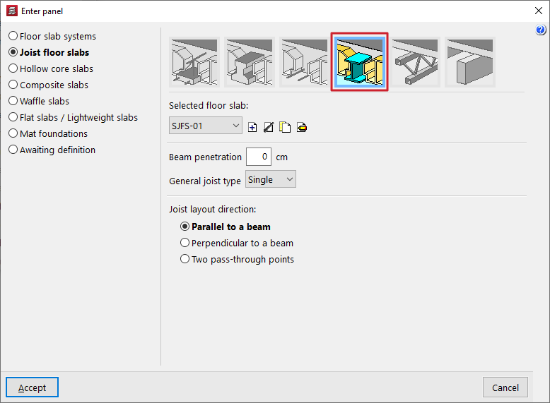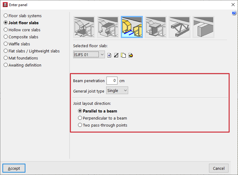 - la introducción y edición de paños de forjados, entre los que se encuentran los forjados de viguetas, placas aligeradas, losas mixtas, forjados reticulares, losas macizas, losas aligeradas y losas apoyadas en el terreno;