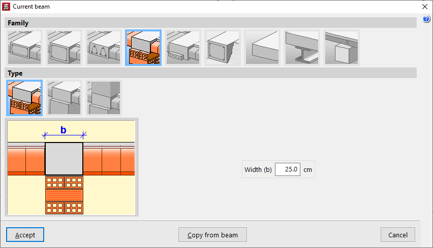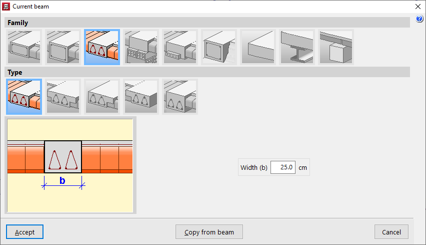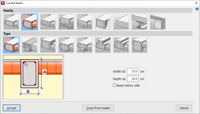 - en el menú "Vigas":