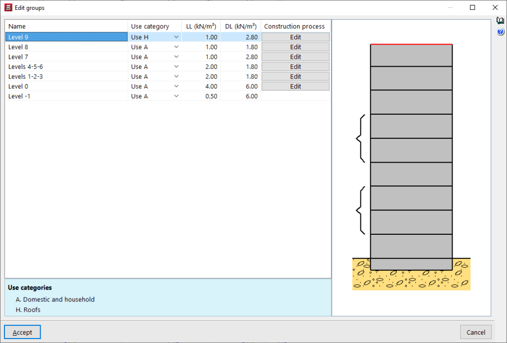 - Definición de plantas y grupos de plantas e introducción de pilares, pantallas y arranques (pestaña "Entrada de pilares")