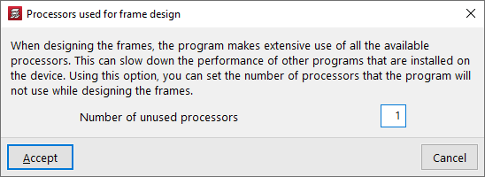 Con la opción "Número de procesadores no utilizados" puede establecer el número de procesadores que el programa no utilizará mientras dimensiona los pórticos.
