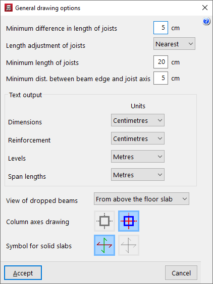 Por último, es posible elegir el "Dibujo de ejes de pilares" y el "Símbolo de losas macizas" entre los disponibles.