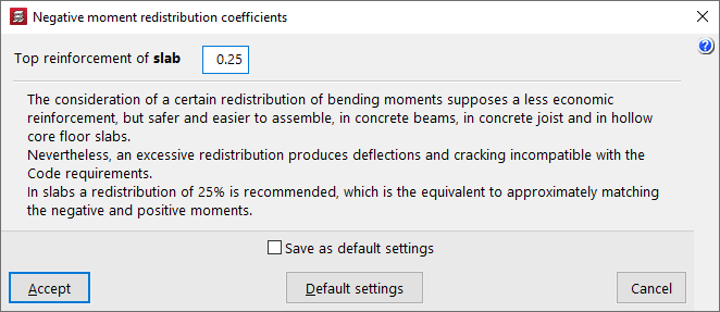 En el campo "Negativos de forjado" se puede escribir el valor del coeficiente de redistribución de momentos negativos en forjados en tanto por uno, entre 0 y 0.30.