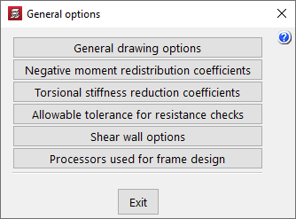 Las "Opciones generales" del menú "Grupos", dentro de la pestaña "Entrada de vigas", permiten configurar los siguientes parámetros relacionados con el dibujo y el cálculo de diferentes elementos de la estructura:
