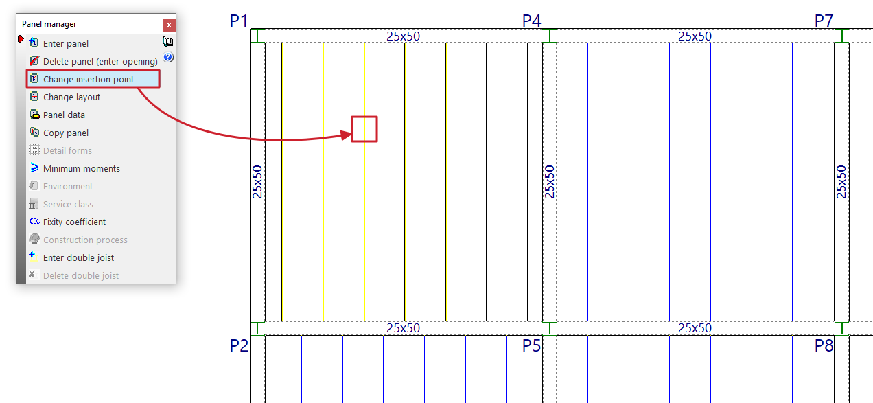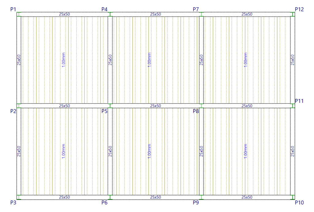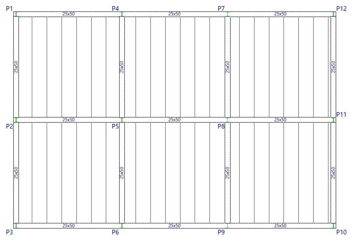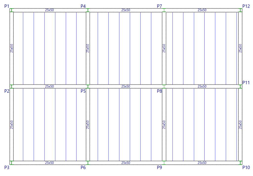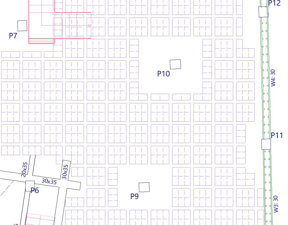 Por otro lado, si una vigueta paralela a una viga queda a menor distancia que la especificada en "Mínima separación entre borde de viga y eje de viguetas", no se dibujará.