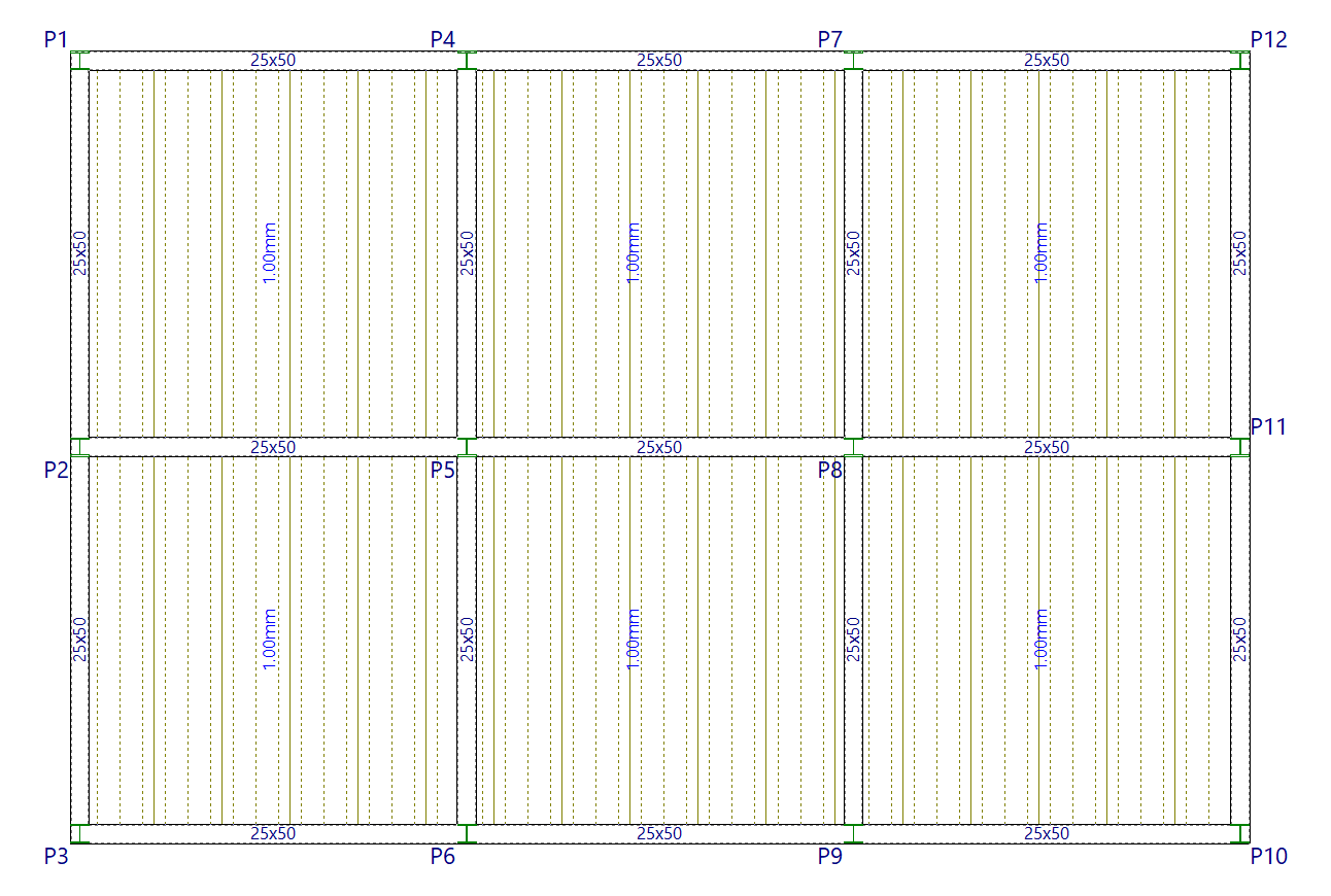 Si se ha introducido correctamente, el programa mostrará la simbología del paño introducido. Por ejemplo, para losas macizas, el símbolo correspondiente es el de dos líneas cruzadas en el centro del paño.