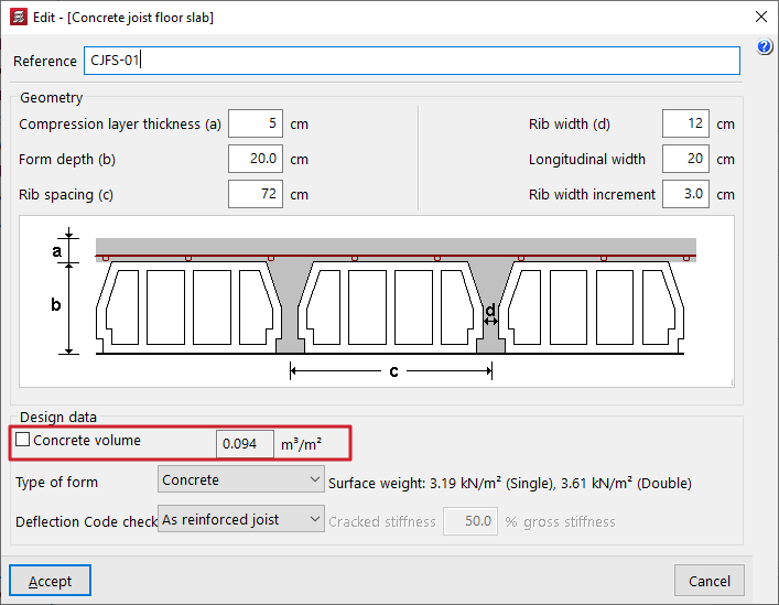En el campo "Mínima diferencia de longitud de viguetas" se define el valor de redondeo de las longitudes de las viguetas al dibujar el plano de planta. Si se introduce 0, en el plano se reflejarán las longitudes reales.