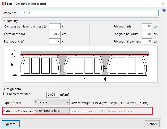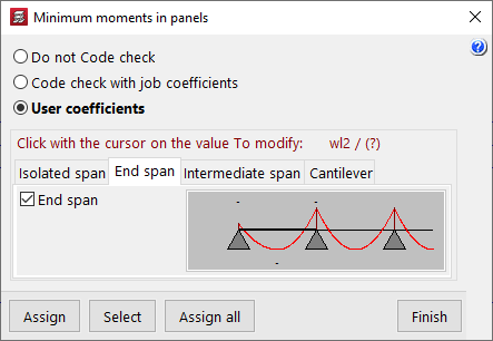 El coeficiente definido en este apartado afecta a las vigas inclinadas introducidas con la opción "Vigas inclinadas" del menú "Vigas". - Vigas en las que apoyan losas macizas / Vigas en las que apoyan reticulares