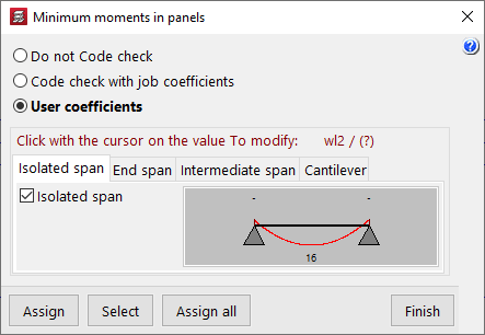 El coeficiente definido en este apartado afecta a las vigas con una longitud inferior al valor de distancia entre nudos introducido. Son idénticas al caso "Vigas restantes", pero en este caso se puede modificar tanto la longitud como el valor del coeficiente a aplicar.