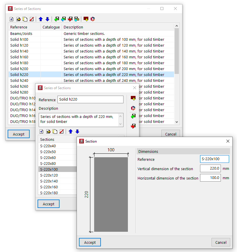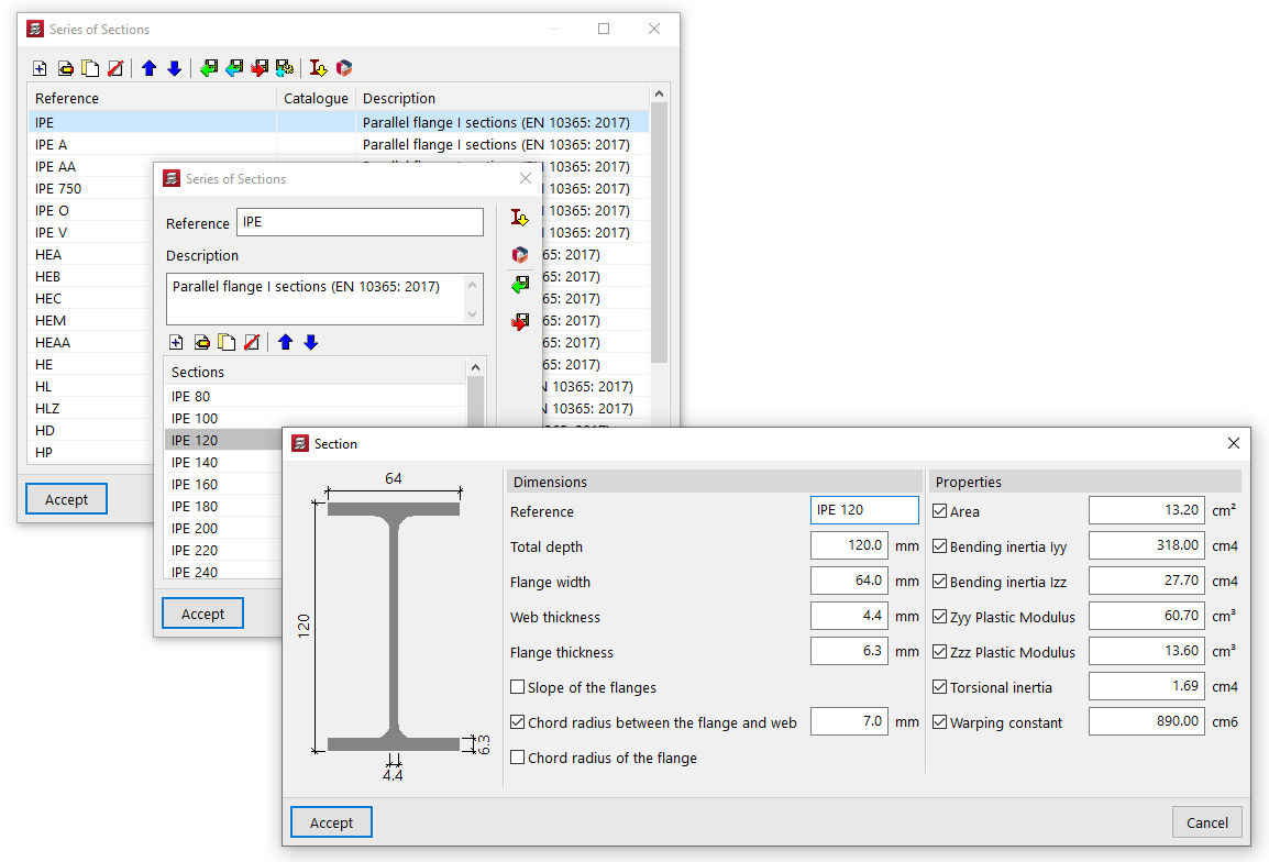 Estas opciones permiten la modificación automática de los perfiles asignados a estos elementos "Utilizando perfiles de la serie superiores al actual" o "Utilizando todos los perfiles de la serie", incluyendo aquellos que sean inferiores al seleccionado por el usuario.