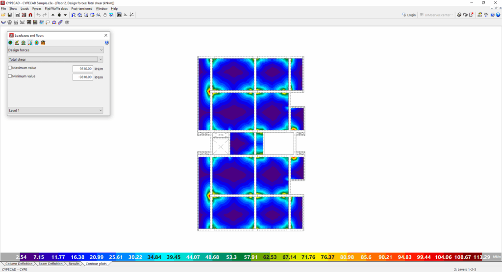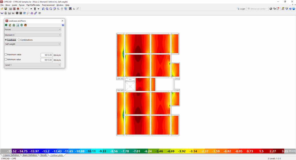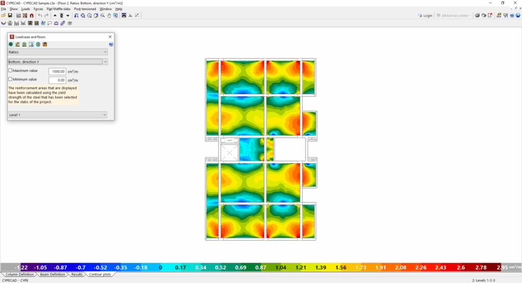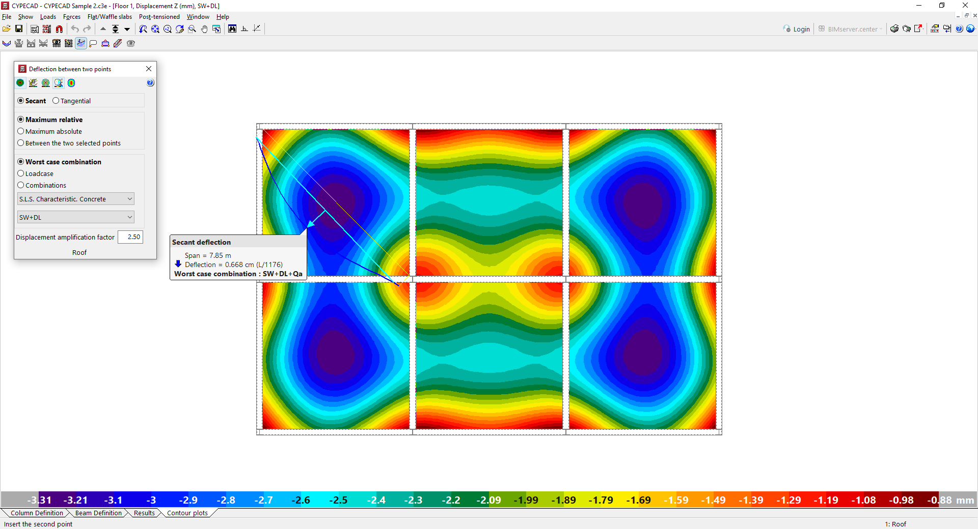 Después de realizar la configuración de los parámetros mencionados, es posible consultar en planta la flecha de una losa o de un forjado reticular.