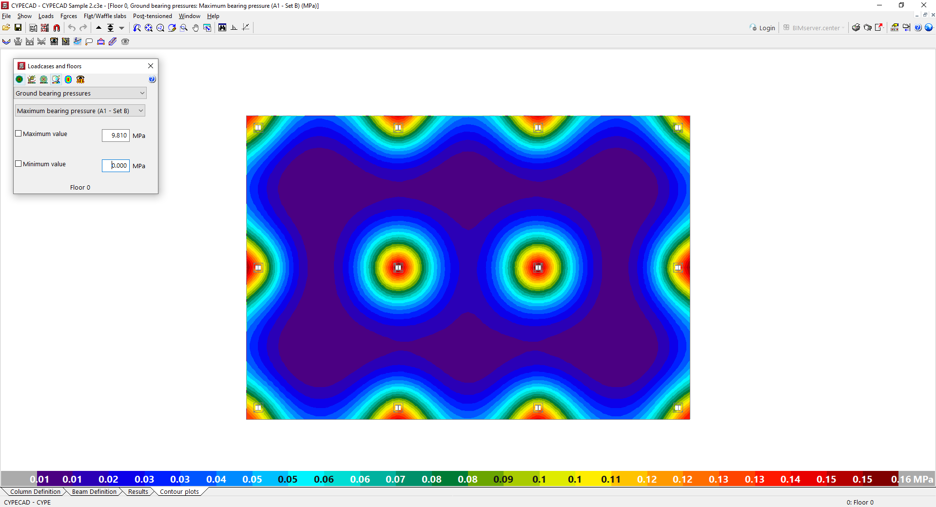 Además, en pantalla se mostrará el diagrama de isovalores de la magnitud seleccionada en los desplegables del cuadro de diálogo. Cada color del gráfico representa un valor diferente. En la parte inferior de la pantalla se muestra una escala con el rango de isovalores mostrados, desde el menor hasta el mayor valor.