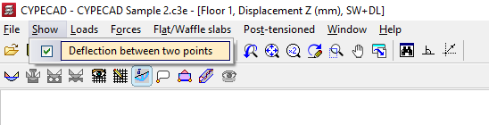 - Se selecciona "Máxima relativa" o "Máxima absoluta" si se desea obtener el tramo donde se produce el máximo valor de flecha relativa o flecha absoluta, respectivamente, a lo largo de la línea que une los dos puntos marcados en pantalla.