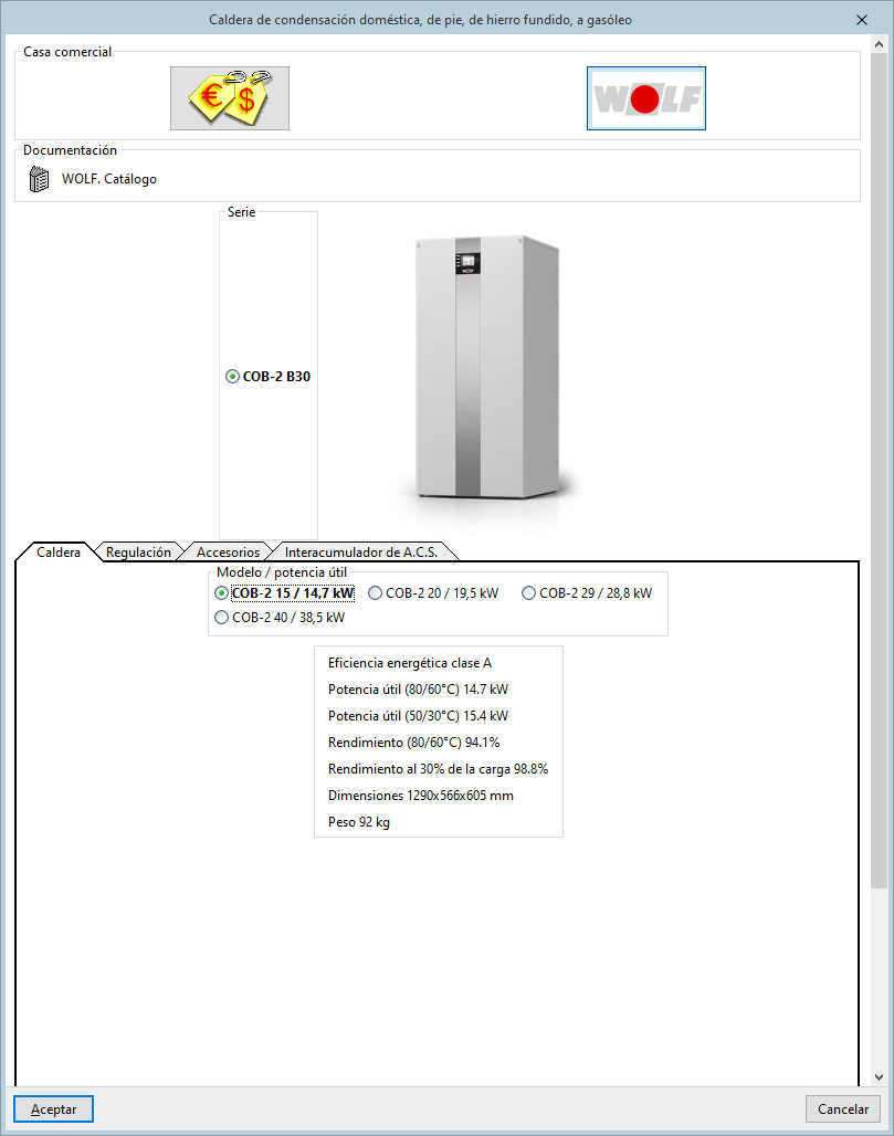 Esta opción permite introducir una caldera alimentada por gasóleo capaz de producir agua caliente para calefacción.