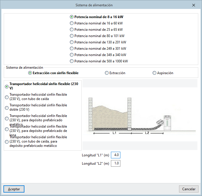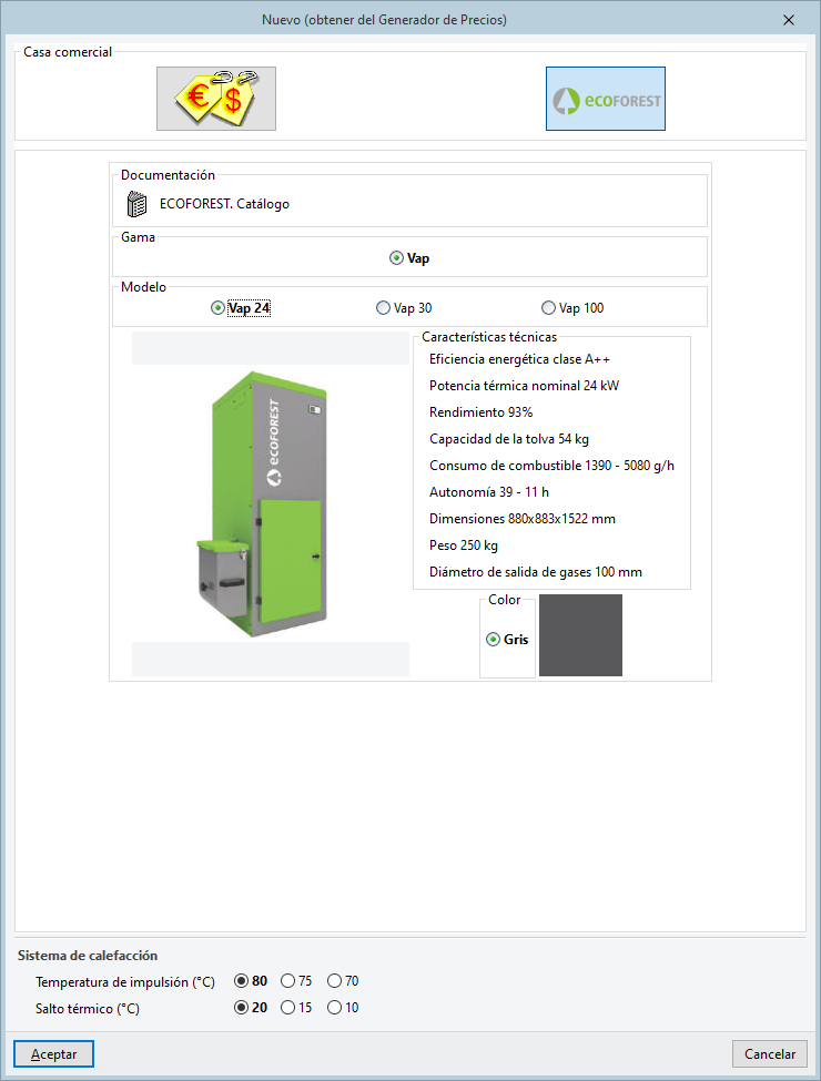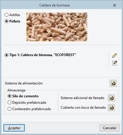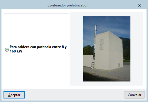 Esta opción permite introducir una caldera de biomasa capaz de producir agua caliente para calefacción.