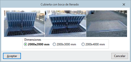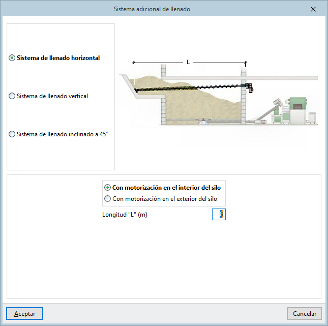 - un "Silo de cemento" (en cuyo caso se define el "Sistema adicional de llenado" y la "Cubierta con boca de llenado");