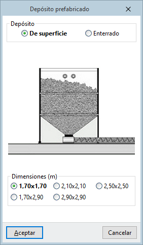 - un "Depósito prefabricado", ya sea "De superficie" o "Enterrado" (si emplea "Astillas");
