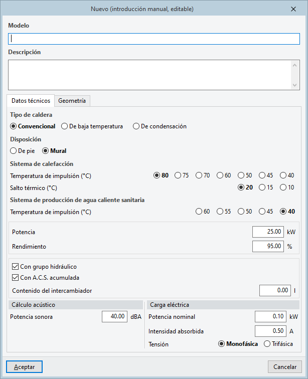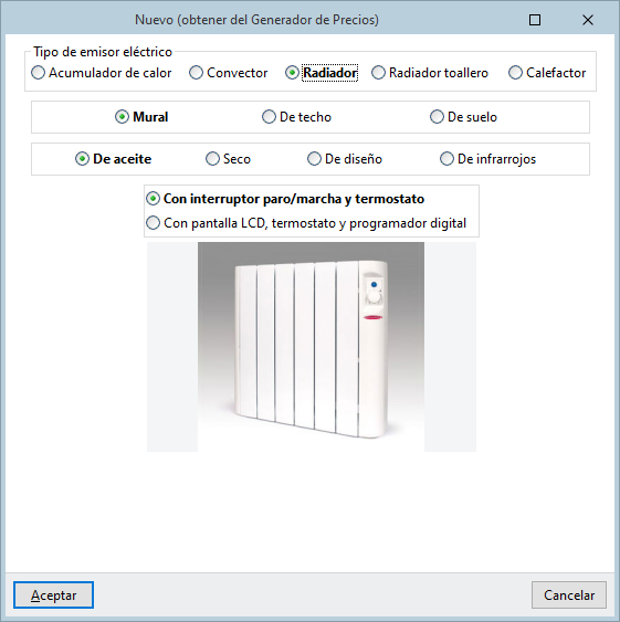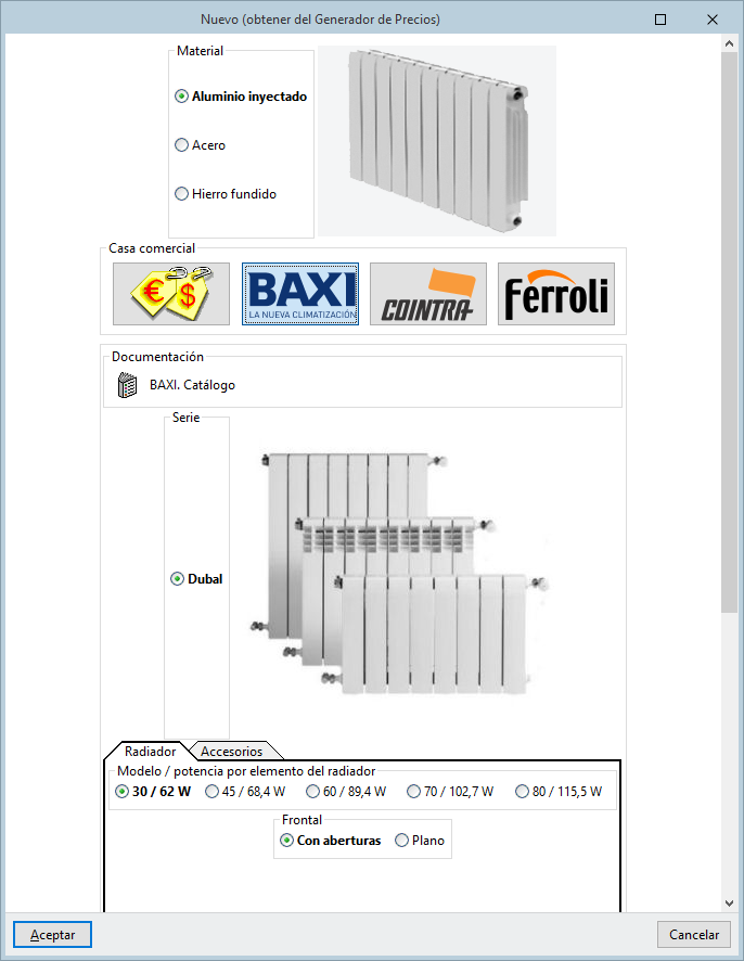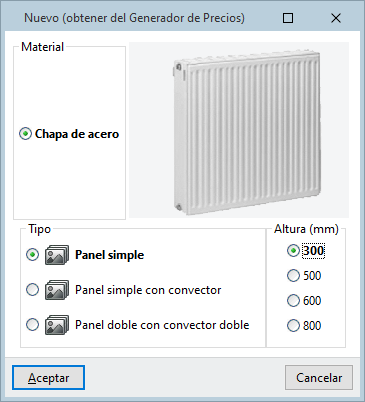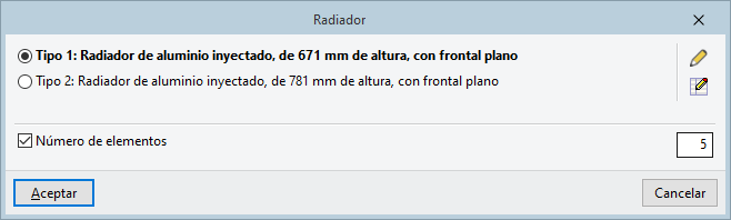 Esta opción permite introducir un radiador (de aluminio inyectado, de acero o de hierro fundido).