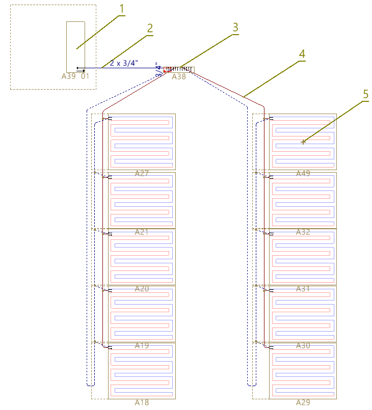 - Conexiones con elementos de la instalación interior (radiadores, cuadros de colectores de suelo radiante, fancoils...).
