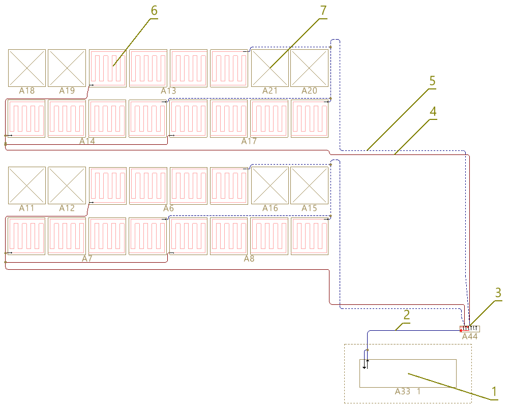 4, 5. Tubería (impulsión y retorno)