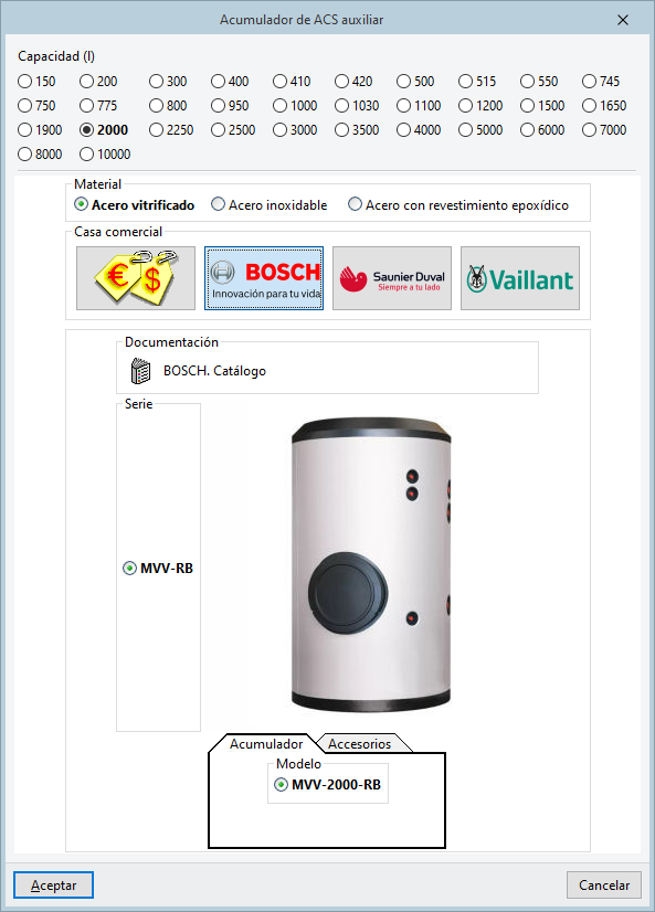 Respecto al volumen de acumulación, el programa calcula un volumen recomendado en función del tipo de producción y del tipo de instalación, pero permite que el criterio del usuario sea el que prevalezca, debido al amplio rango de recomendaciones que existen para determinar el volumen óptimo de acumulación en este tipo de instalaciones.