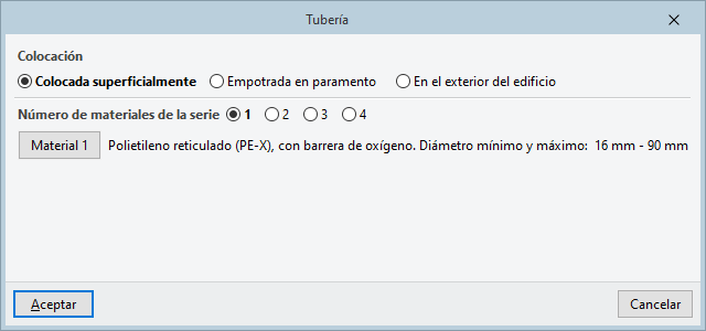 En el caso de tipologías de tuberías del Generador de precios, es necesario indicar su "Colocación", ya sea "Colocada superficialmente", "Empotrada en paramento" o "En el exterior del edificio".