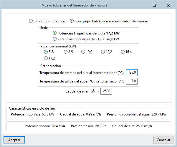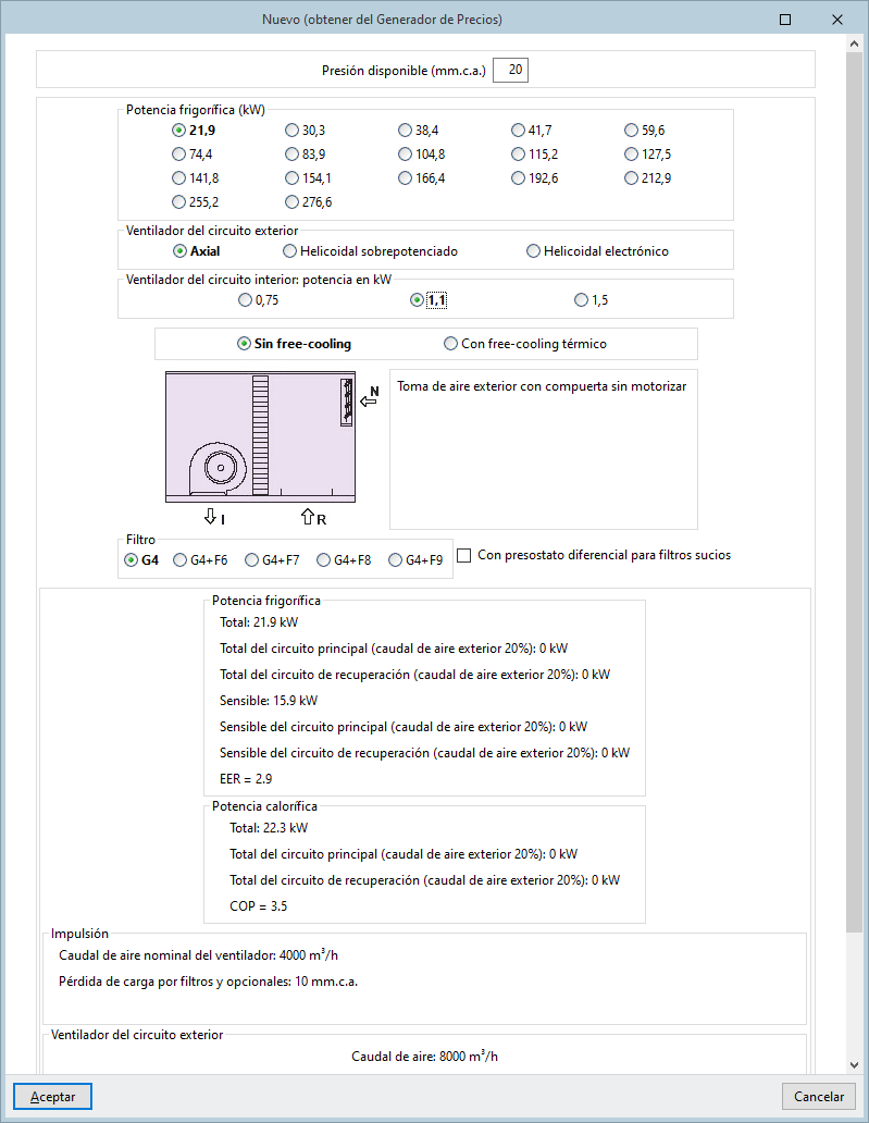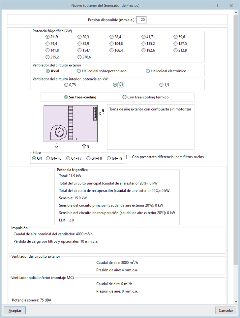 Esta opción permite introducir un equipo rooftop sólo frío, capaz de producir únicamente un caudal de aire frío.