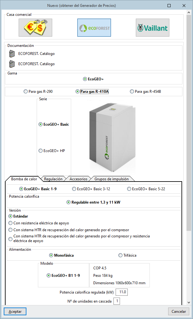 - Unidad agua-agua bomba de calor no reversible, geotérmica, para instalación en interior