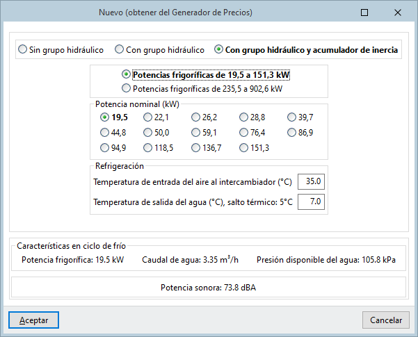 Esta opción permite introducir una unidad de refrigeración agua-agua con sistema de dos tubos, capaz de producir únicamente agua fría, preparada para su instalación en el interior del edificio.