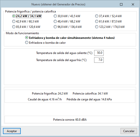 Esta opción permite introducir una bomba de calor aire-agua con sistema de cuatro tubos, capaz de producir simultáneamente agua fría y agua caliente, preparada para su instalación en el exterior del edificio.