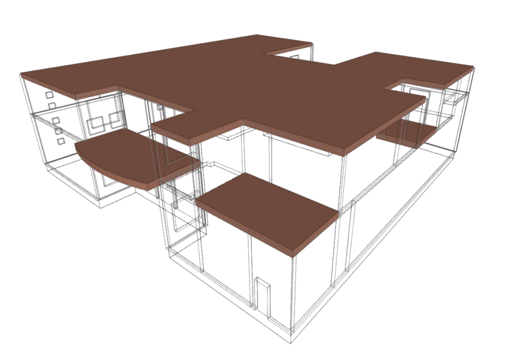 - Primero, se dibujan tantos forjados de tipo "Tejado" como faldones existan, en un grupo de plantas específico (para que no se solapen con los forjados de otras plantas).