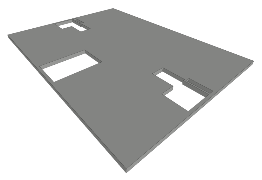 Por último, los parámetros "Largo" y "Ancho", en los lucernarios rectangulares, y "Diámetro", en los lucernarios circulares, permiten indicar sus dimensiones. En el caso de los lucernarios poligonales, se introduce la geometría directamente mediante su dibujo en planta.