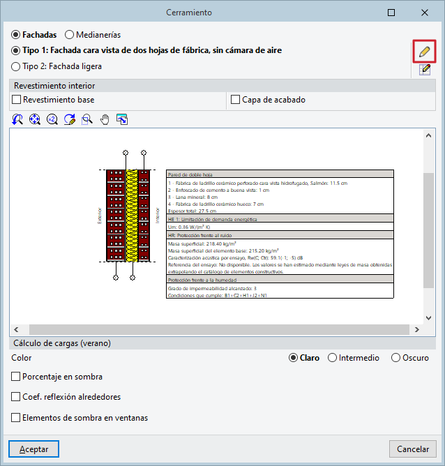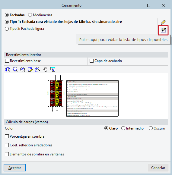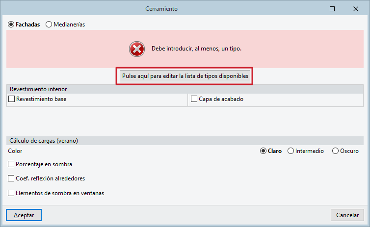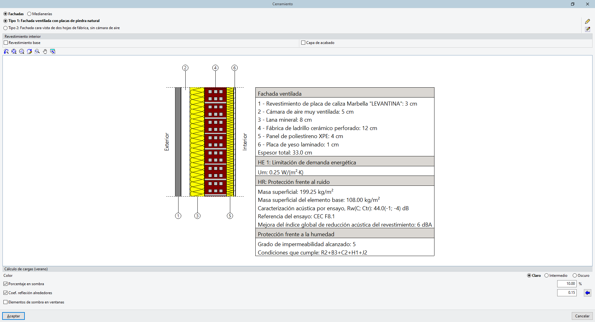Los cerramientos son los elementos verticales de separación entre los recintos interiores del edificio y el ambiente exterior (fachadas), o entre los recintos interiores del edificio y los espacios pertenecientes a otros edificios que no se definen en el modelo (medianerías).