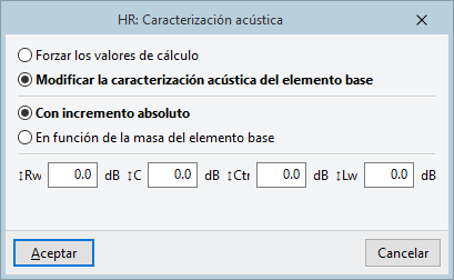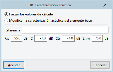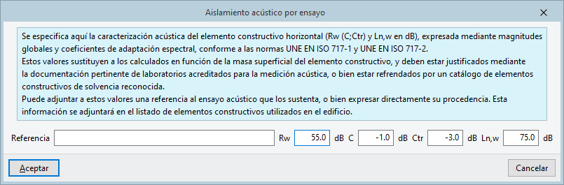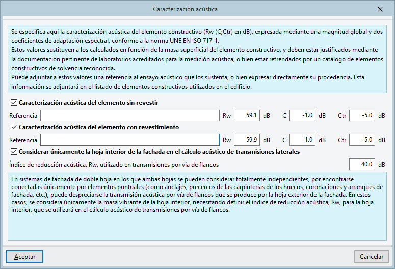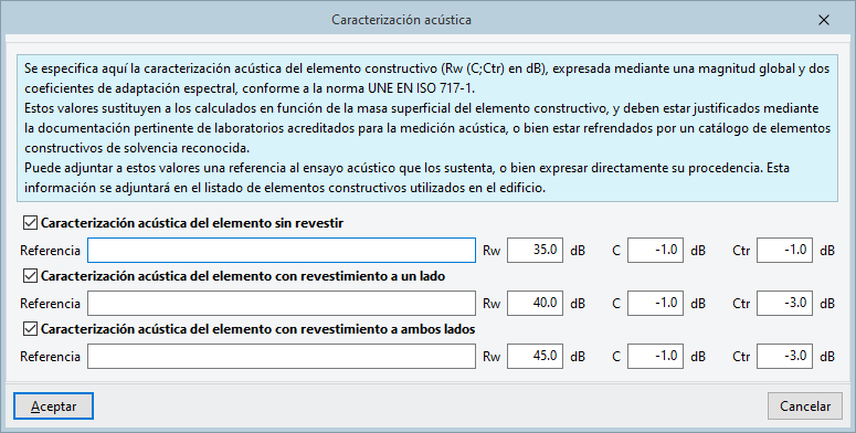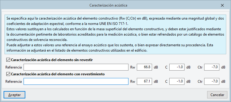 Permite indicar los valores de caracterización acústica del lucernario.- Rw, C, Ctr