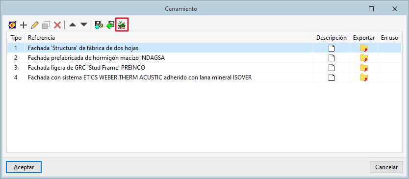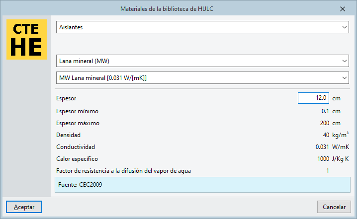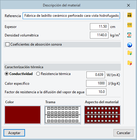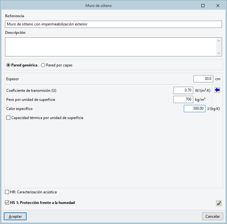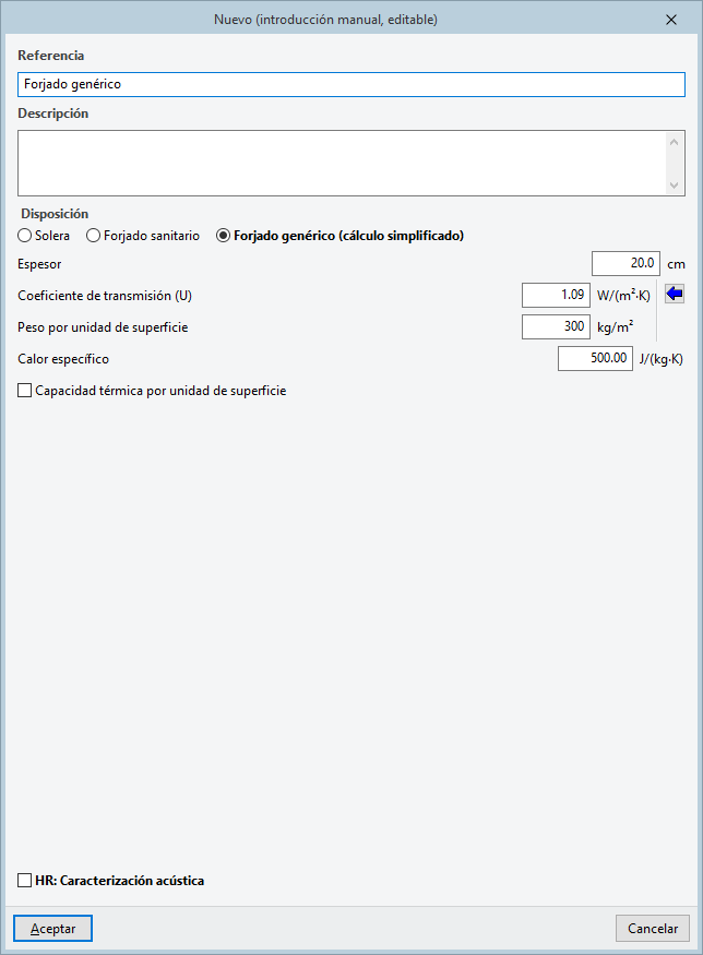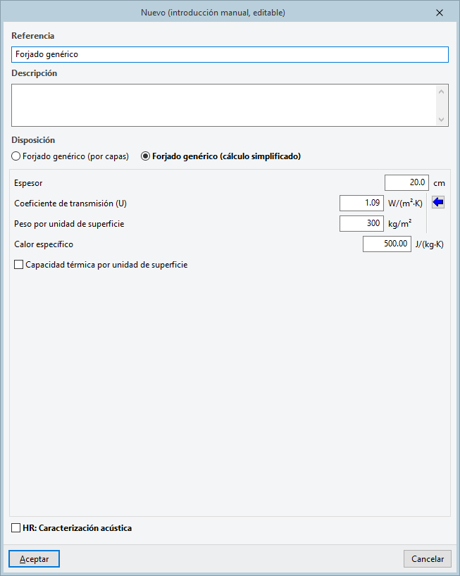 Si se opta por una definición simplificada, basta con introducir el siguiente valor:- Coeficiente de transmisión (U)