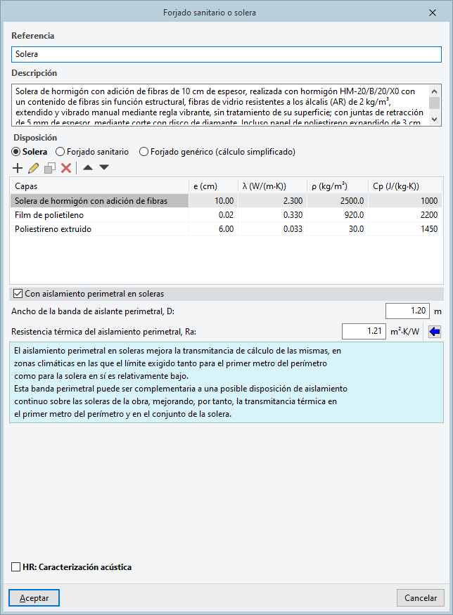 Permite introducir una solera o un forjado sanitario en el modelo.