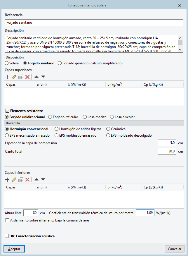 No es necesario introducir varias plantas para modelar la existencia de un forjado sanitario: es suficiente con introducir un elemento de tipo "Forjado sanitario" con esta opción.