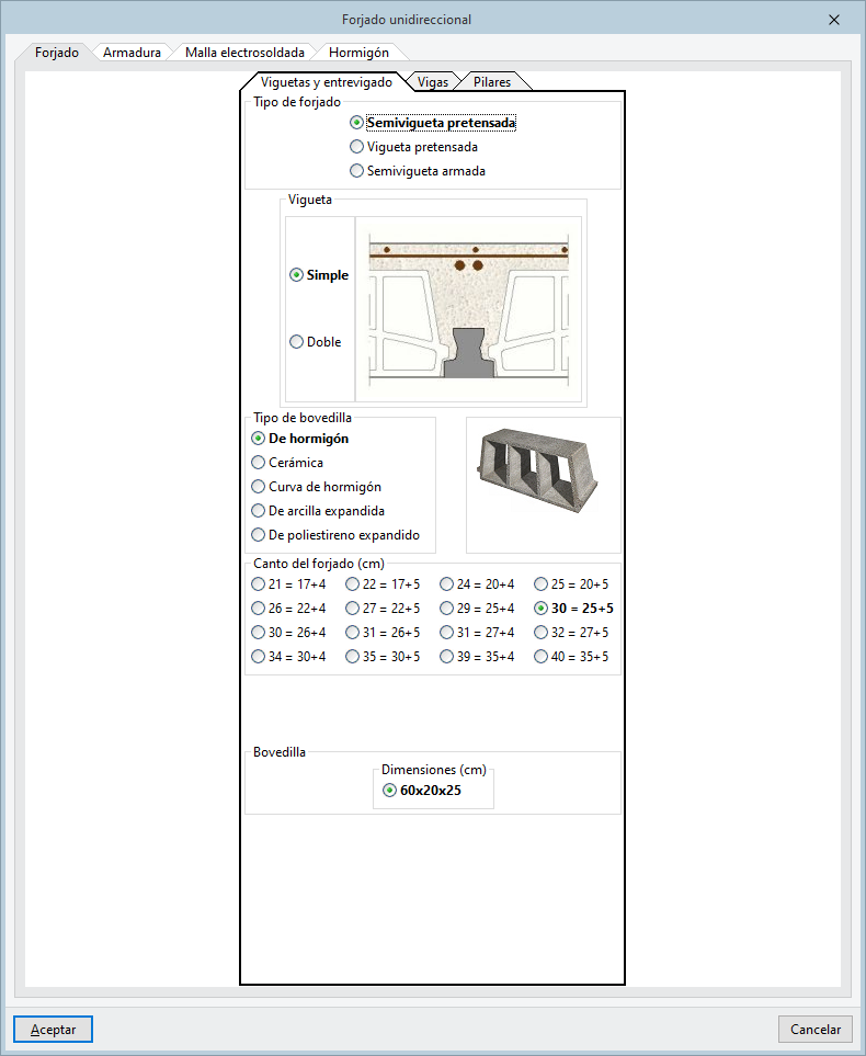 Estos elementos pueden utilizarse para modelar un forjado interior, que separa dos recintos interiores del edificio, o un forjado en voladizo, que separa un recinto interior del edificio en la parte superior y el ambiente exterior en la parte inferior.