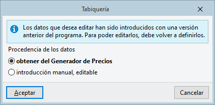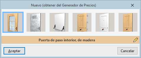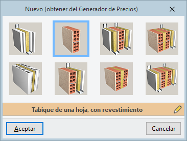 Este asistente, disponible en la barra de herramientas superior de la lista de tipos de accesorios, permite calcular automáticamente los valores de los parámetros que definen el tipo de accesorio en función de la selección realizada de accesorios colocados.
