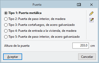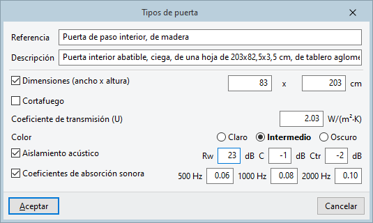 Las puertas son elementos completamente opacos que se disponen sobre muros o particiones previamente introducidos en el modelo.