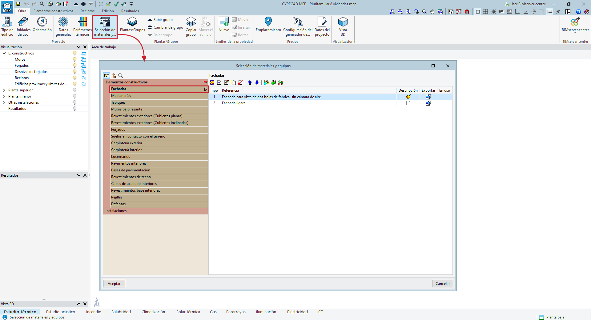 CYPECAD MEP. Pestaña "Elementos constructivos"