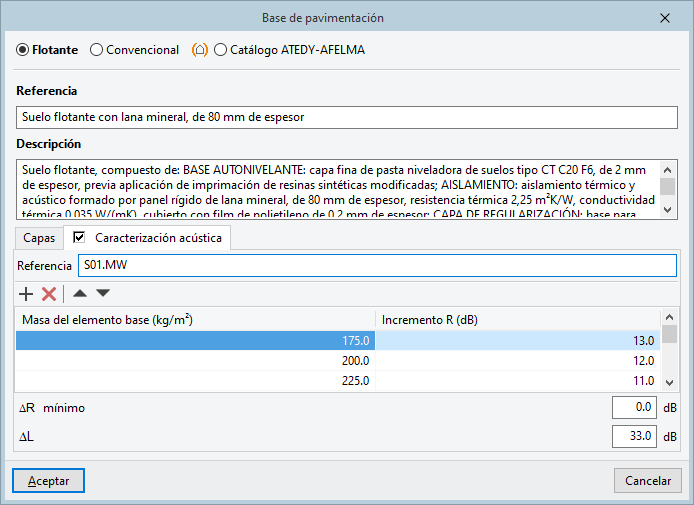 El programa tomará este valor de la mejora del índice de reducción acústica como mínimo. - ΔL