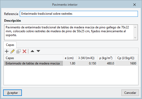 Permite modificar la descripción de un recinto ya introducido en el modelo, para editar sus condiciones de proyecto.