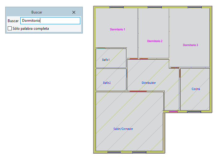 Permite buscar un recinto por su referencia completa o parte de ella. Las referencias de los recintos encontrados se muestran en color magenta en el área de trabajo.