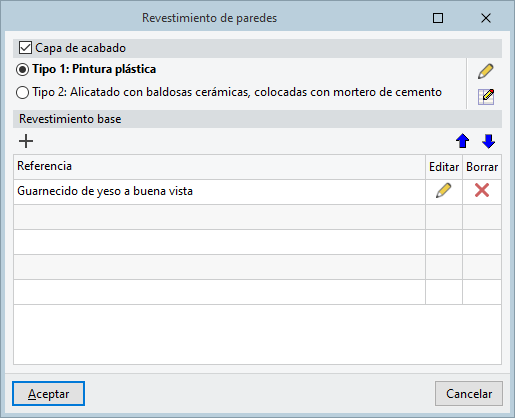Permite modificar el revestimiento de paredes de un recinto ya introducido en el modelo.