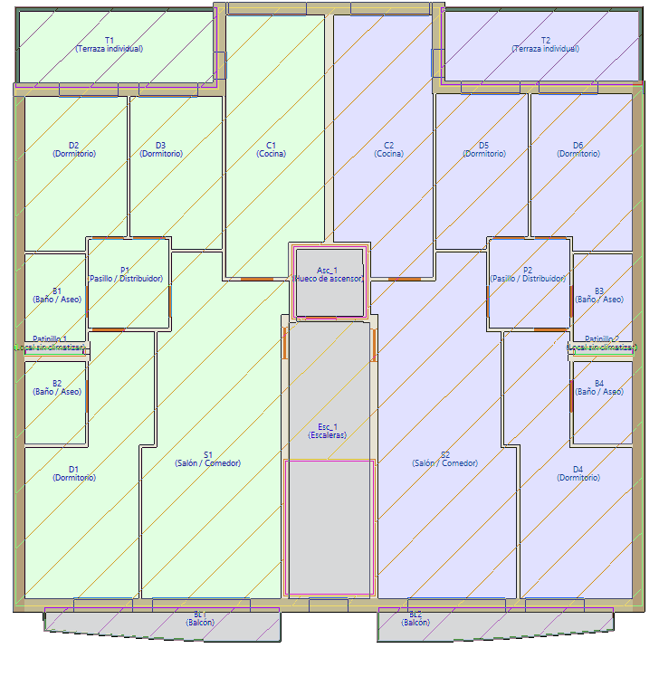 Por ejemplo, los recintos predefinidos ofrecidos en edificios de vivienda de tipo "Plurifamiliar" son los siguientes: