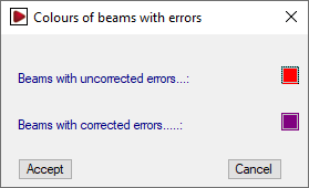 En este diálogo se puede cambiar el color con el que se perfilan en pantalla las "Vigas con errores sin corregir" y las "Vigas con errores corregidos".