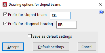 Esta opción permite acceder a un cuadro de diálogo donde se pueden activar y modificar los prefijos con los que se rotulan las vigas inclinadas y las diagonales de arriostramiento: