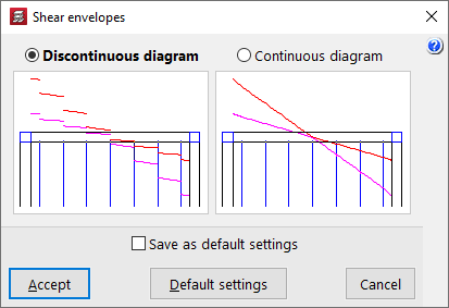 Permite ajustar la representación de las envolventes de cortantes en las vigas. El trazado puede seguir: